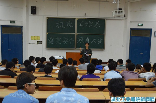 (通讯员:张春升)为了确保校园寝室的文明与安全,努力创造健康文明、安全稳定的校园环境,围绕十堰市“五城联创”,机电工程系组织该系所有寝室长于2015年5月5日晚在6209教室召开了寝室文明安全教育大会。系书记杜海军、辅导员明瑞光参加了会议。