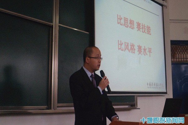 系主任李军致开幕辞。李主任代表机电系对选手表示热烈的祝贺,对筹备组的工作人员表示衷心的感谢。他表示,希望可以通过这次比赛,可以更好的“以赛促学”,在机电系营造勤练技能、学好技能的良好学风。李主任鼓励各位参赛选手在竞赛中充分发挥聪明才智,沉着、认真对待每项赛程,要求选手坚持“友谊、交流、团结、进步”的宗旨,以良好的心理素质和精神风貌,赛出水平、赛出风格,最终取得好成绩。