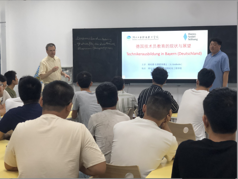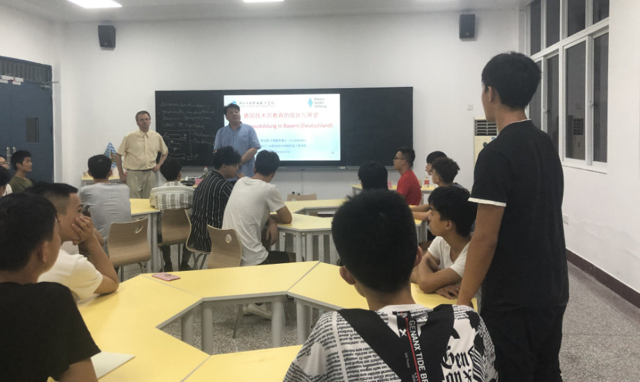 (通讯员:叶姿)8月27日下午,伟德国际1949官网邀请来自德国因戈施塔特技术员学校、奥迪公司的格哈德·戈德霍弗博士向中德技员班同学举行了《德国技术员教育的现状与展望》主题讲座,学校中德合作项目特聘张晨阳教授,机械设计与制造专业全体教师及2017、2018级中德技术员班学生代表参加了此次讲座。