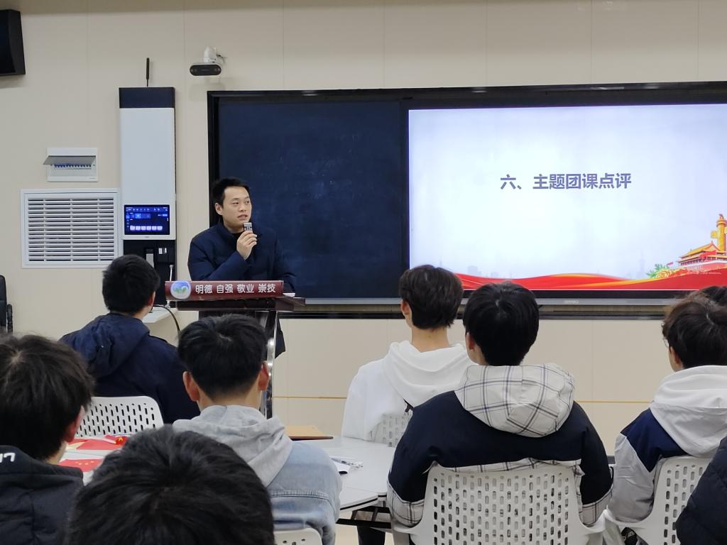 (学生记者 常君豪)12月1日下午,由校团委主办,伟德国际1949官网分团委承办的第三期示范主题团日交流活动在6114教室举行。本期主题团课以“以青春之名,书奋斗华章”为主题,围绕“团课学习、主题授课、榜样人物分享、奋斗精神大讨论、学生合唱、主题团课点评”六个方面展开。校团委、机电学院学工团队、部分二级学院负责人和辅导员代表20余人参加了观摩交流。