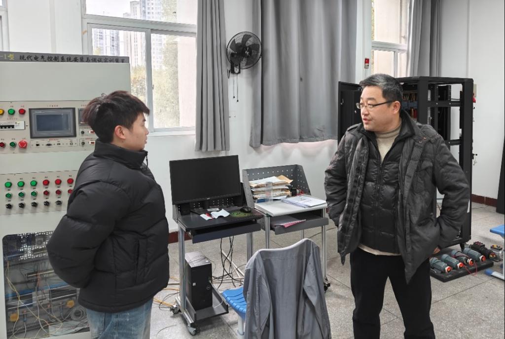 在省赛备赛的实训室,严航院长了解了学生训练的情况,询问了同学们返程车票购买情况,告诉同学们要按照指导老师的要求,抓紧时间训练,争取明年取得优异的成绩,最后嘱咐同学们,在训练过程中有什么困难和要求要大胆的提,机电学院会为备赛训练提供一切便利。