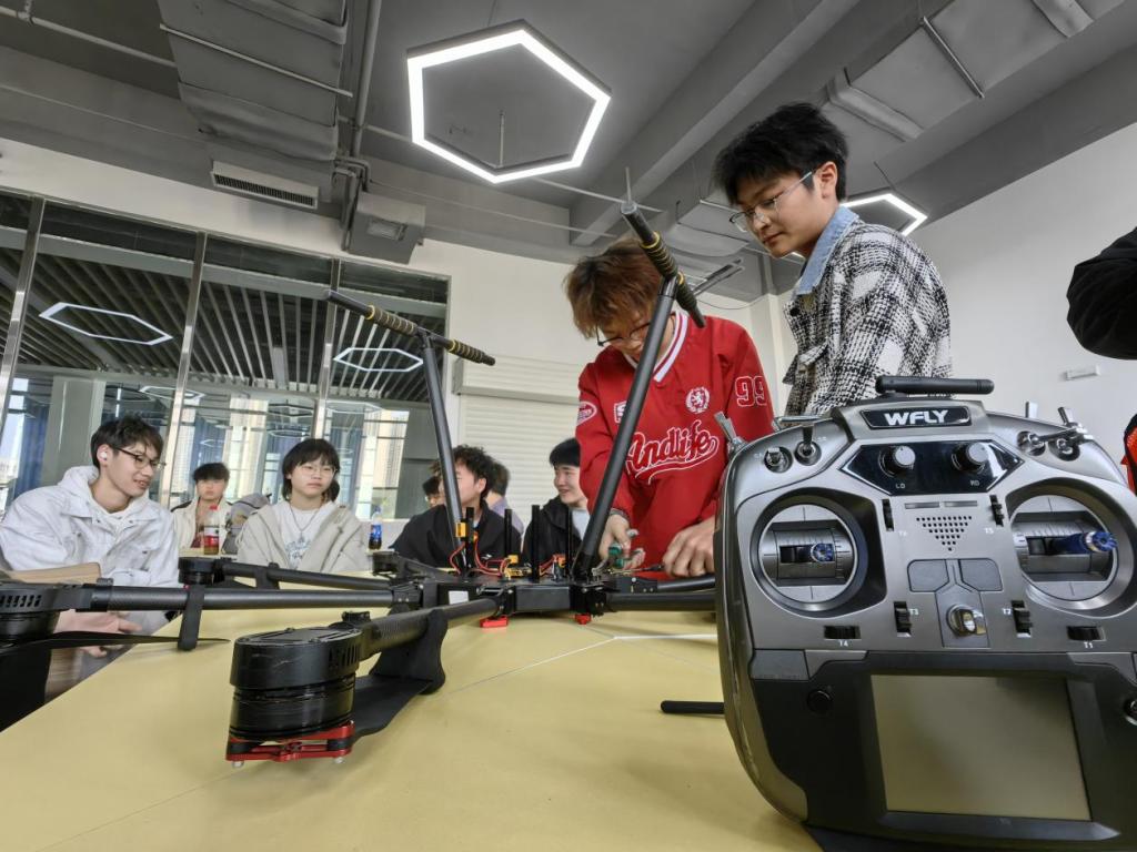 组装完成后,湖北惠飞的指导老师还进行了简单飞控调试教学,介绍飞控系统参数设置、飞行模式切换,演示如何依据实际飞行环境调整参数,让无人机飞行更稳定、精准。