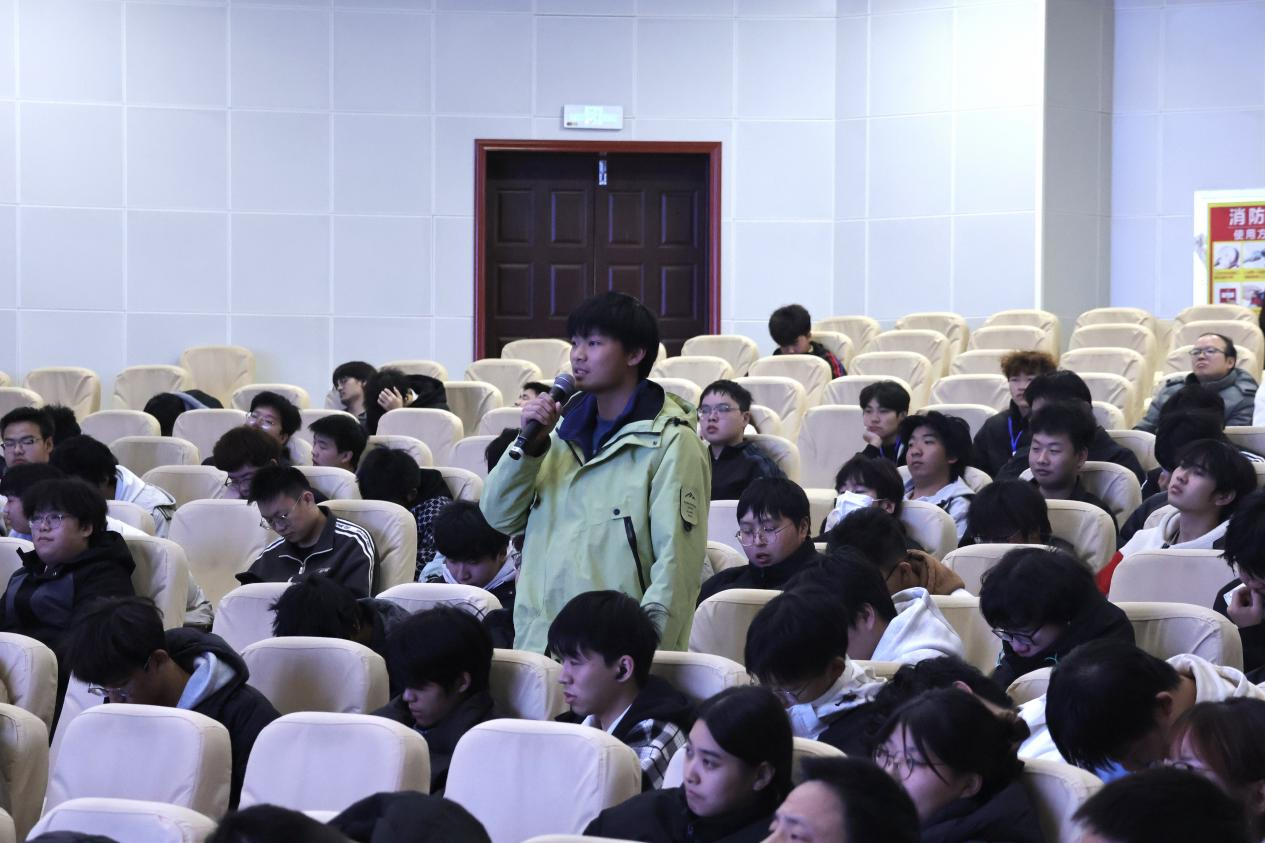 在互动环节,同学们围绕技术学习、就业趋势等话题踊跃提问,陈庚教授结合科研与产业经验一一予以细致解答,现场气氛热烈,交流深入。