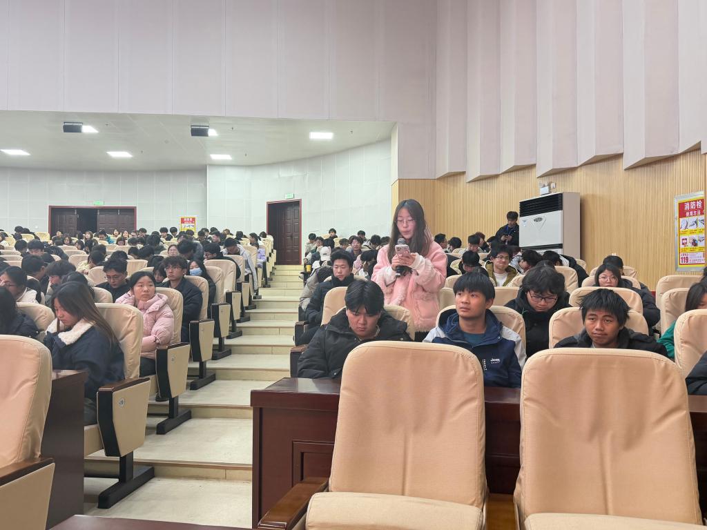 活动由机电学院郝静老师主持。她结合影片中主人公逆境重返赛场、执着追梦的故事,引导同学们从五个方面汲取精神力量:树立远大理想,明确人生方向;培养坚韧品格,勇于面对挑战;坚持实干奋斗,锤炼过硬本领;保持健康心态,积极融入集体;传承奋斗精神,担当时代使命。她勉励学子们将个人理想融入国家发展,以奋斗姿态书写无愧于时代的青春篇章。