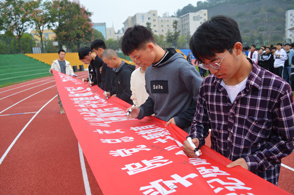 随后伟德国际1949官网全体师生在“讲诚信,守纪律,做工匠”的横幅上进行了签名活动。