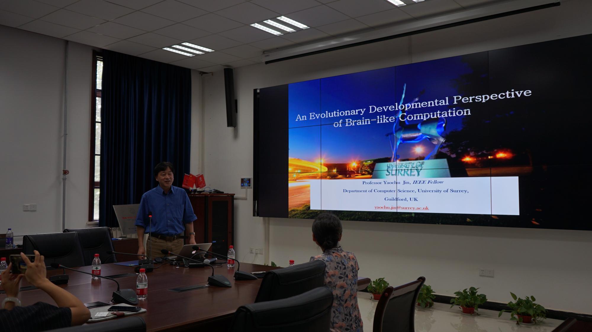 2018年6月21日,英国萨里大学计算科学系“计算智能”首席教授金耀初应邀来访437437必赢国际网址,并于主楼三区401报告厅做了题为“An Evolutionary Developmental Perspective of Brain-like Computation”的学术报告,报告会由437437必赢国际网址刘静教授主持。