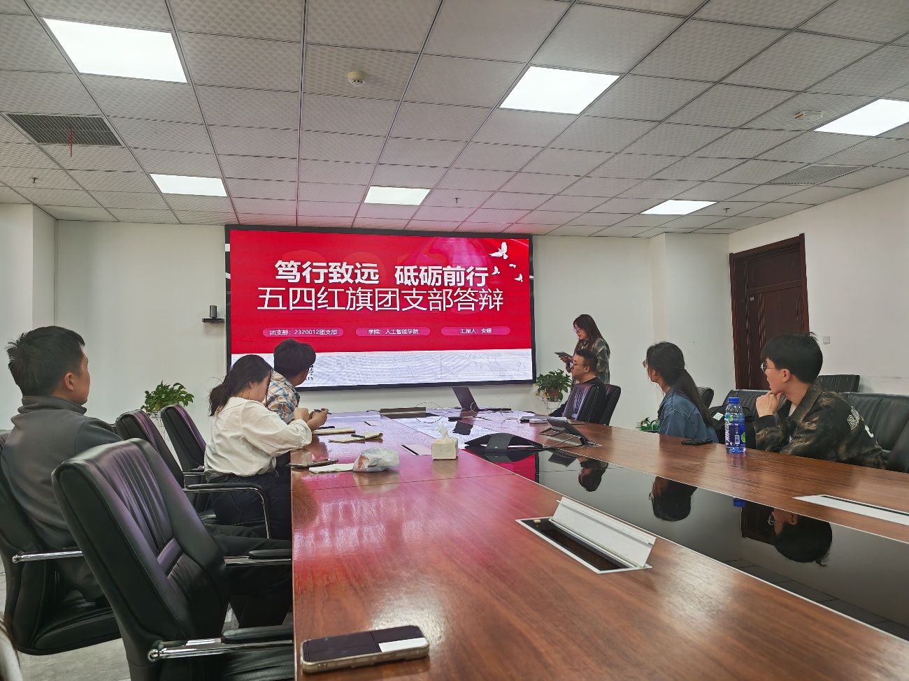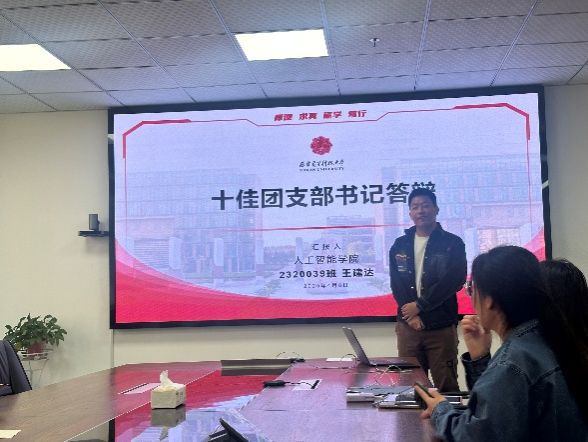 答辩环节中,标兵奖项候选人通过多媒体展示、案例分享等形式,全方位展现个人与集体的成长成果。优秀共青团员标兵候选人围绕学术科研、社会实践等方面,展示了智能学子的先锋力量;优秀共青团干部标兵候选人结合团务工作、主题团日等创新举措,分享了基层团支部在提升组织力、服务力方面的实践经验;五四红旗团支部标兵候选集体则围绕“AI+思政”特色主题,展示了将专业学习与思想引领深度融合的典型案例。