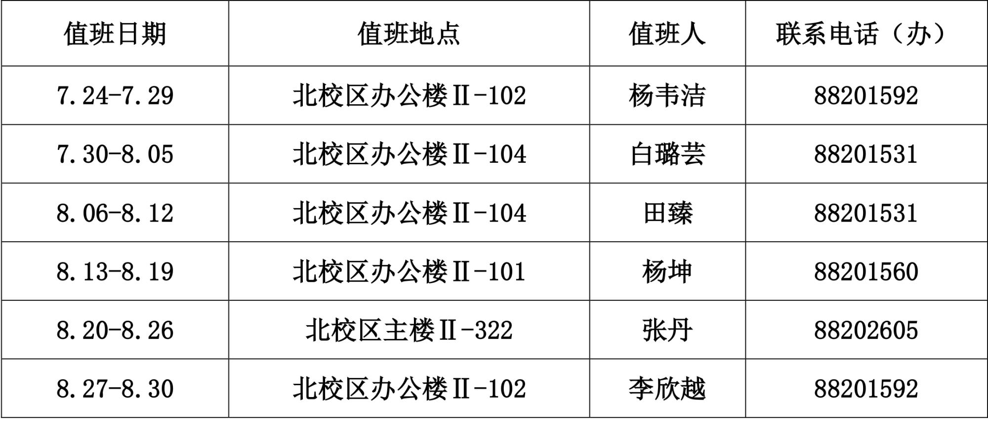 【暑期值班】437437必赢国际网址暑假值班安排表