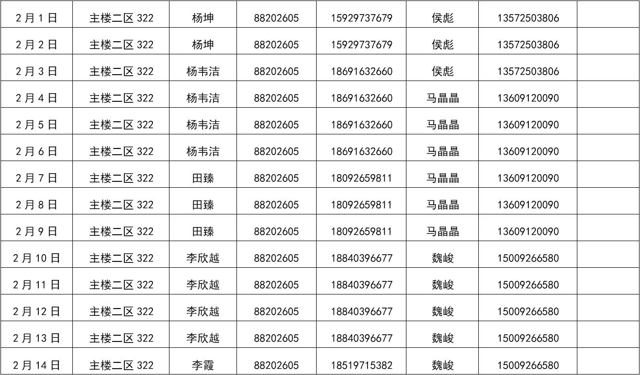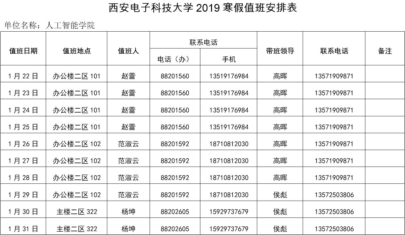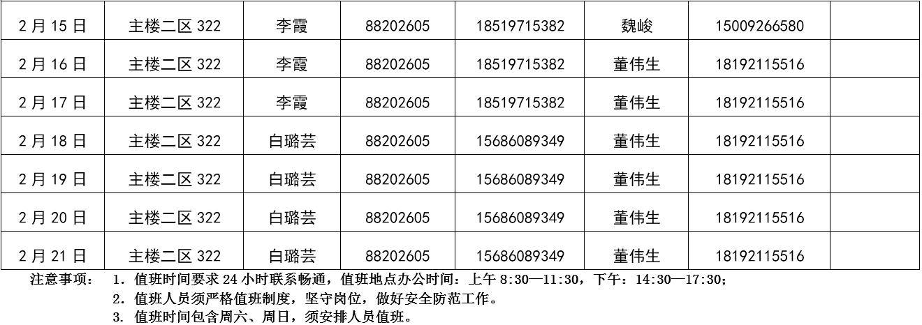 437437必赢国际网址2019年寒假值班表
