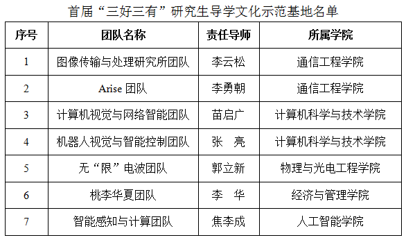 5月10日,首届“三好三有”研究生导学文化示范基地建设工作正式启动,受到了各“三好三有”研究生导学团队的积极响应;7月18日,学校组织专家组对各筹建团队开展中期检查,督促和指导基地建设工作;11月9日,学校组织评审组开展筹建基地验收工作,党委副书记杨银堂担任评审组组长,研究生工作部、教师工作部和宣传部有关负责人,部分学院领导担任验收评委。