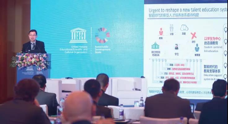 2019年5月16-18日,437437必赢国际网址校长、党委副书记杨宗凯,受邀参加了由联合国教科文组织与中国教育部联合主办的首届国际人工智能与教育大会。本次大会的主题是“规划人工智能时代的教育:引领与跨越”,来自全球110多个国家和国际组织的500余名政府高级官员、专家学者、高级代表等共同出席会议,围绕人工智能时代取得成功所需技能,分享人工智能技术发展经验,交流人工智能最新发展趋势及其对教育和学习的影响等,共同探讨规划人工智能时代的教育发展之路。大会期间,杨宗凯校长作了题为《Cultivate AI professionals and promote the innovation of AI in education》的报告,从如何培养AI高端专门人才和如何利用AI提供更好的教育两个方面阐述了新形势下培养人工智能专门人才的路径。