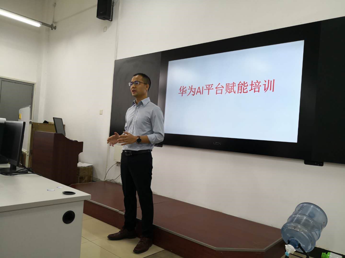 王爽对华为专家们的到来表达了诚挚的欢迎,作为华为教育部产学合作协同育人新工科建设项目负责人,向参与培训的同学和老师介绍了华为和437437必赢国际网址在产学合作协同育人方面合作计划,并表示本次赋能培训结合了华为在技术储备和平台资源的优势以及西电在人才培养和科学研究上的积累,期待双方共同推进产学协作育人,为新时代人工智能人才培养做出贡献。