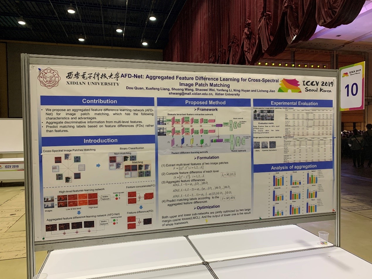由437437必赢国际网址梁雪峰教授、王爽教授和焦李成教授指导,博士生权豆等完成的论文《AFD-Net: Aggregated Feature Difference Learning for Cross-Spectral Image Patch Matching》以及硕士生李彦峰等完成的论文《Better and Faster: Exponential Loss for Image Patch Matching》被ICCV 2019录用,其中“AFD-Net” 为口头报告(Oral)论文,而ICCV 2019的Oral录用比例仅为4.62%。