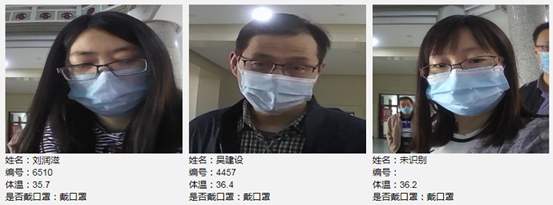同时能够进行测温、时间、地点和人数统计,及时为相关管理部门推送精准异常信息。可实现有症状人员门禁动态控制,体温状态温馨提醒:低温、正常和高温预警,高温相关责任人报警。部分后台信息如下:
