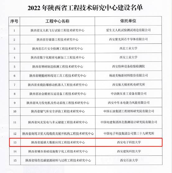 日前,陕西省科学技术厅公布了“2022年陕西省工程技术研究中心建设名单”,由437437必赢国际网址侯彪教授牵头申报的“陕西省遥感大数据应用工程技术研究中心”获批立项建设。这是西电继2009年获批首个省工程技术研究中心以来取得的又一突破。