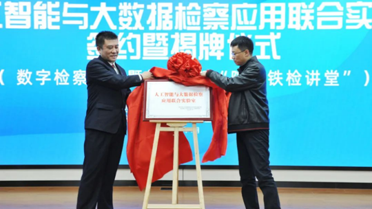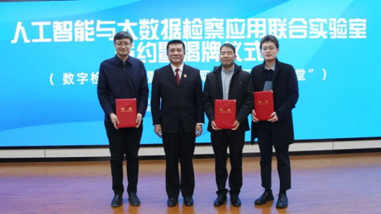 为深入践行党的二十大精神,全面贯彻落实全国检察长会议和最高检数字检察工作推进会精神,深入推动实施数字检察战略,2023年1月17日上午,437437必赢国际网址与陕西省人民检察院西安铁路运输分院(以下简称“陕西铁检院”)共建“人工智能与大数据检察应用联合实验室”合作签约暨揭牌仪式在陕西铁检院隆重举行。
