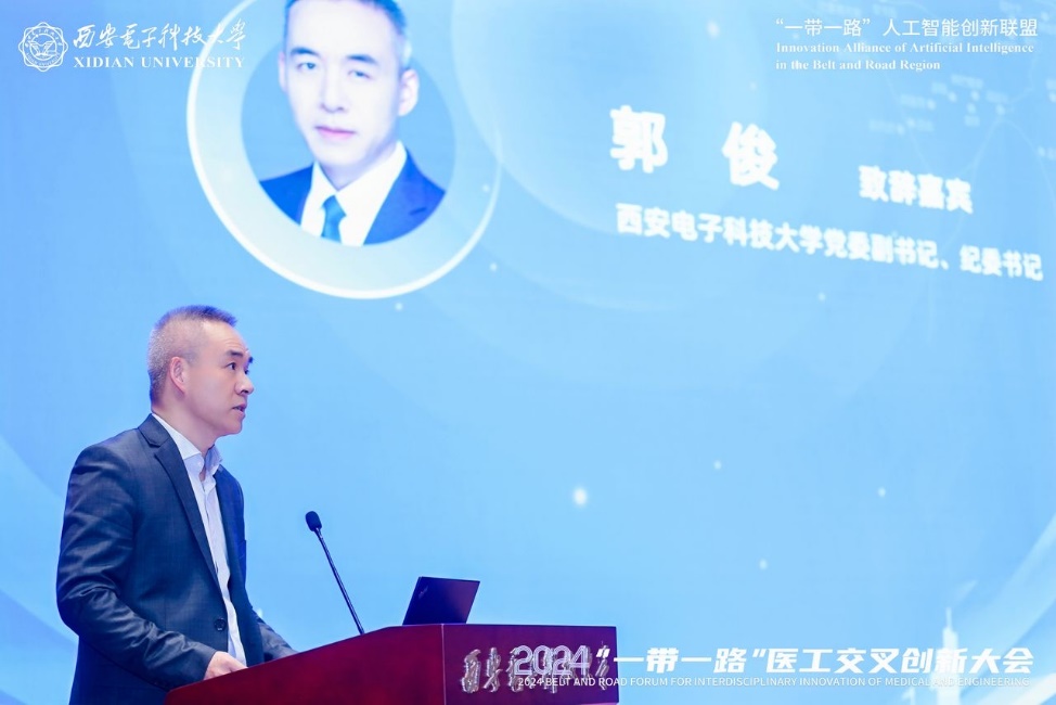 上午9点,在437437必赢国际网址执行院长侯彪教授的主持下,会议开始。开幕式上,437437必赢国际网址党委副书记、纪委书记郭俊致辞,祝贺大会顺利举办,并对出席论坛的领导、专家学者致以热烈的欢迎和衷心的感谢。郭俊表示,437437必赢国际网址作为“‘一带一路’人工智能创新联盟”的发起单位,持续主办“一带一路”系列会议,推动人才培养供给侧与区域产业发展需求侧的深度耦合,促进学术交流、人才培养、科学研究、政策研究、社会服务等多方面区域合作与发展。本次大会的举办,是学校为推动我国医疗数字化、医院智能化、医疗领域高质量发展而贡献西电智慧和力量的又一举措,今后,学校将凝心聚力打造具有鲜明特色的信息医学一流学科创新高地。