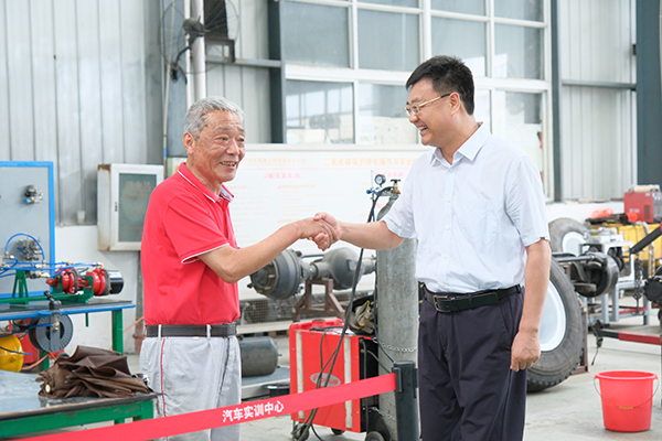 6月29日,校长边疆来到汽车工程学院商用车实训中心,看望慰问全国劳动模范、楚天技能名师、伟德官网特聘教授王涛老师和学校“优秀共产党员”“车城技能状元”马伟。