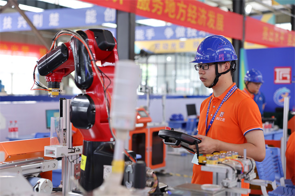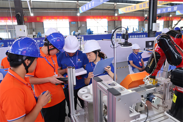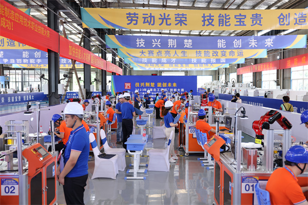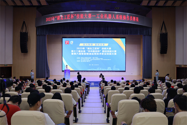 新闻网讯(文/记者 陶亿 图/记者 熊超)7月3日至5日,由省人力资源和社会保障厅、十堰市人民政府主办,湖北省职业技能鉴定指导中心、十堰市人力资源和社会保障局、武汉华中数控股份有限公司、湖北工业职业技术学院、十堰市职业技能鉴定指导中心承办的2023 年“湖北工匠杯”技能大赛——第十二届全省“华中数控杯”数控技能大赛暨第六届智能制造应用技术职业技能大赛工业机器人系统操作员赛项在伟德官网举行,来自全省11个地市州的35支参赛队伍70余名选手参加比赛。