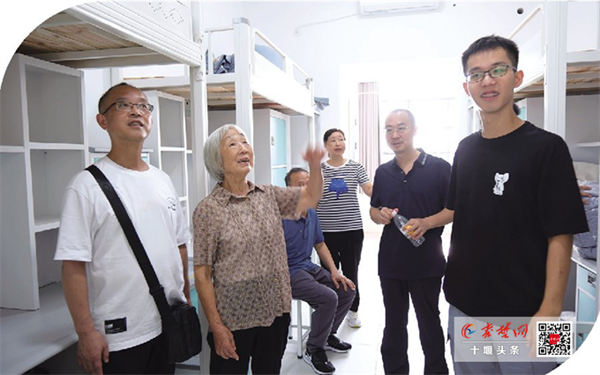 “我自己就是老师,这宿舍比我们学校的好多了。真是条件优越,挺好的。”正在宿舍给孩子铺床的新生家长朱先生笑着告诉记者。