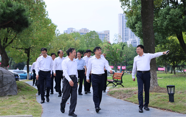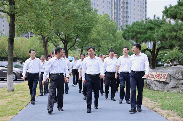 黄剑雄听取了校党委书记魏文芳、校长边疆关于学校近期工作汇报。听说学校今年招生人数、录取分数、计划完成率、报到率均创历史新高,内涵建设取得一系列标志性成果,黄剑雄非常高兴,称赞学校办出了特色、办出了品牌,学校吸引力和社会影响力得到了大的提升。黄剑雄一行实地察看了暑期新改建的校园人行道和运动场等设施,夸赞校园像公园和花园,打造了优越的育人环境。