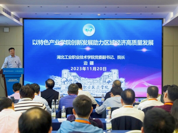 新闻网讯(通讯员 孔鹏)11月20日,黄炎培职业教育思想研究会2023学术年会在武汉开幕,此次会议汇聚了来自全国各地的职业教育专家、学者近300人共同探讨和研究职业教育的现状与未来发展。在20日下午举行的长江中游三省职业院校校长论坛上,伟德官网校长边疆作为湖北省3位交流代表,为与会的湖南、湖北、江西三省79位职业院校校长作《特色产业学院创新发展助力区域经济高质量发展》的主旨报告。