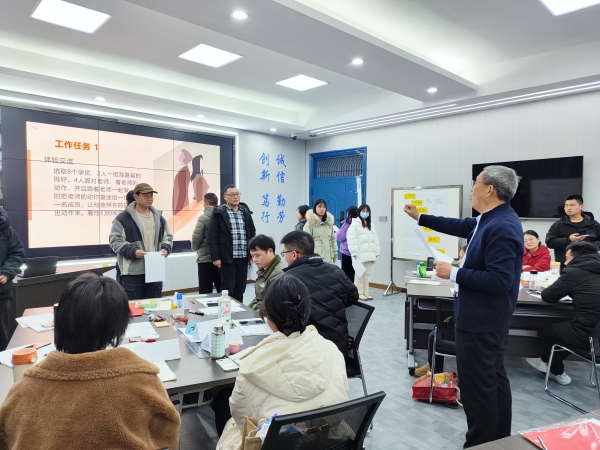 在教学环节,30位教师分成5个教学小组,每个小组按照工学结合课程开发与实施的原则,就“职业行动能力”开展不同的教学活动,参训教师独立创建行动导向教学过程,将教学设计与自身专业相结合,并以合作探究的学习方式积极参与协商策略,通过制定方案、制作海报、展示演说环节圆满完成了项目任务。