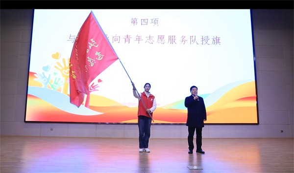 副校长胡昌龙向学校青年志愿者协会授旗,并宣布2024年志愿服务月活动正式启动。现场志愿者集体宣誓,并在志愿服务签名墙处签名留念。