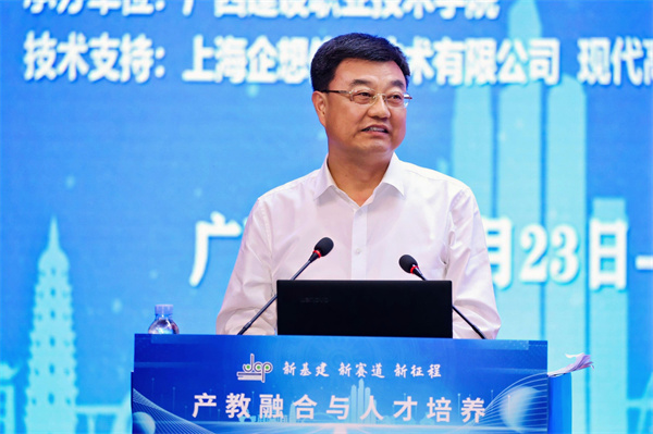 新闻网讯(通讯员 孔鹏)4月24日,由全国高等职业学校校长联席会议主办、广西建设职业技术学院承办的2024年全国高等职业学校校长联席会议高等职业教育高质量发展研讨会在广西南宁举行。会议深入学习贯彻习近平新时代中国特色社会主义思想和党的二十大精神,落实中共中央办公厅、国务院办公厅《关于深化现代职业教育体系建设改革的意见》,以“新基建 新赛道 新征程”为主题,通过主旨报告、经验分享、互动交流等形式,就高等职业教育在产教融合与人才培养、新基建与关键办学能力建设、数字化与国际化发展等方面的经验成果进行交流研讨。湖北工业职业技术学院校长边疆同志应邀参会并作交流发言。来自全国高职院校1200余名党委书记、校长和专家学者参加会议。