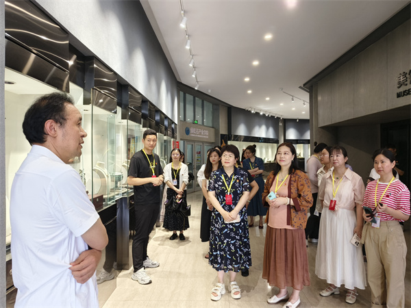 随后,学员们参观了百草园心灵花园、匠心忆园,深入了解了伟德官网“五育并举,环境养心”的育人模式。在绿松石产业学院,学员们参观了场馆建设、文化展陈和学生作品成果,详细了解了艺术设计学院的发展历史、绿松石文化、首饰设计与工艺专业特色和校企合作等情况。