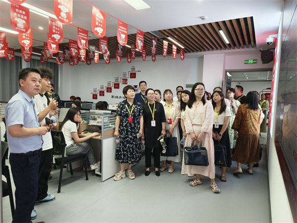在产教融合大楼,学员们实地走访了虚拟仿真实训基地、京东十堰数字经济产业学院,详细了解了建筑消防技术、建筑工程技术、网络营销与直播电商、现代物流管理等专业建设情况。在智慧消防实训室,学员们现场体验了虚拟仿真灭火、建筑施工VR等活动;在网络营销实训教室,学员们推门听课,听取了学生的营销数据报告,观看了伟德官网学生自导自演的网络营销短视频;在电商直播间,学员们观看了伟德官网学生电商直播实况,部分学员在现场关注了直播间账号并下单购买商品。培训班学员对伟德官网理实一体化的人才培养模式给予高度评价。