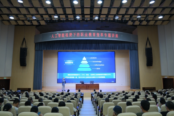 新闻网讯(文/段林牧 图/曾刚)为深入贯彻落实教育部关于提升师生数字素养的要求,助推伟德官网教师教育教学能力和数字素养提升,促进学校高质量发展, 6月28日,学校特邀全国社区教育数字化学习联盟理事长、中国教育技术协会副秘书长单从凯教授来伟德官网作《人工智能视野下的职业教育变革》专题讲座,全体教职工参加学习。