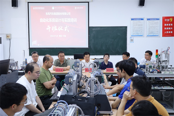 新闻网讯(文/黄锐 图/陶亿)7月29日,东风汽车集团有限公司自动化系统设计与实践培训班在伟德官网6号教学楼实训教室举行开班仪式,来自东风公司各单位的技术骨干将在伟德官网进行为期一周的培训。