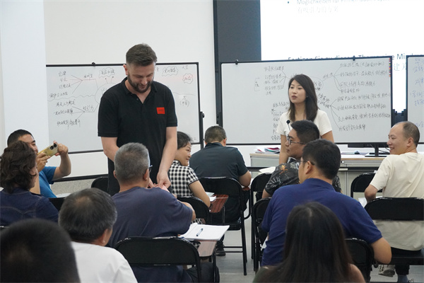 此次培训邀请了德国职业教育领域资深专家Christian Josef Pownuk来校授课,培训为期5天,Pownuk通过分组讨论、案例教学、角色扮演、实操演练等多种形式着重分享了德国的双元制职业教育体系的核心理念、行动导向教学法教学分析和教学计划的结构要素,通过真实的课程实践情景再现了德国课堂“六步法”的实施过程,结合德国机电一体化专业教学大纲对学习领域课程教学组织进行了深入讲解,同时还就如何调动学生的主动意识,如何有效引导开展教学等问题与学员们进行了积极地探讨。