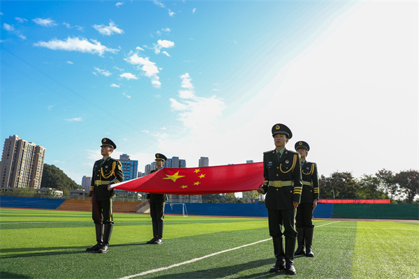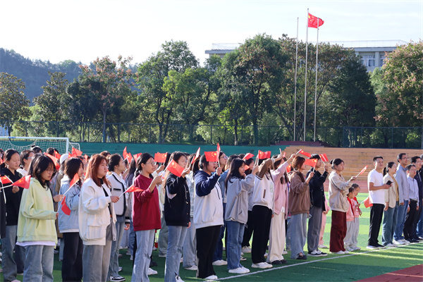 新闻网讯(文/王紫琳 图/张鑫 姚堃)为热烈庆祝中华人民共和国成立75周年,致敬伟大祖国,进一步加强爱国主义教育,增强广大青年的民族自豪感和历史使命感,团结引领广大青年永远听党话、跟党走,10月1日上午8时,学校在北区操场隆重举行庆祝中华人民共和国成立75周年升旗仪式暨“青春逢盛世·奋斗谱华章”主题团日活动,校团委等部门负责人及旅游商贸学院全体在校师生参与升旗仪式。