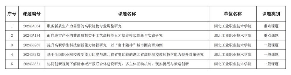 新闻网讯(通讯员 段林牧)近日,湖北省教育厅发布了“2024年度教育科学规划课题”立项结果,伟德官网5项课题成功获得立项批准。其中重点课题2项,一般课题3项。