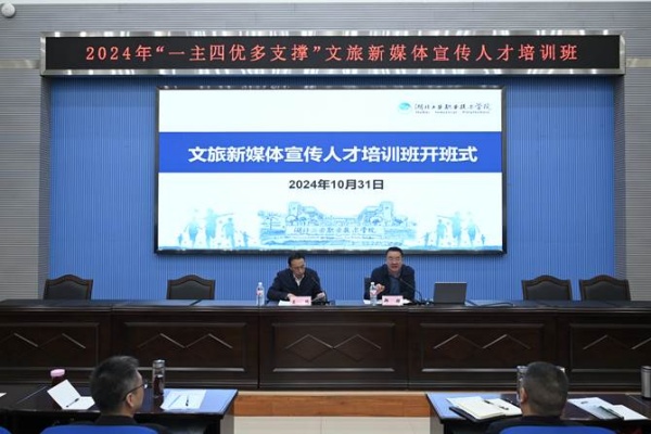 新闻网讯(通讯员 邓丽)为积极响应数字化、信息化、网络化的文旅产业发展需求,进一步提升全市文旅宣传人才的新媒体运营能力,十堰市文化和旅游局于10月31日至11月1日在伟德官网学术报告厅成功举办了2024“一主四优多支撑”文旅产业新媒体宣传人才专题培训班。开幕式由十堰市文旅局副局长王瑞主持,伟德官网副校长郑强致辞。
