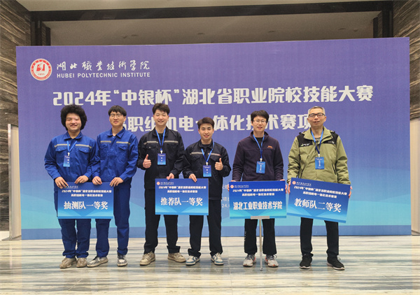 新闻网讯(通讯员金兴伟)3月8日至3月15日,2024年“中银杯”湖北省职业院校技能大赛(高职组)机电一体化技术赛项在湖北职业技术学院举行,来自全省40所高职院校的139支代表队、160名学生、59名教师参加本次大赛。经过7天激烈角逐,最终伟德官网伟德国际1949官网机械制造及自动化专业学生严杰、王家峰组成的推荐队获推荐组一等奖;郭志鹏、何磊组成的抽测队获抽测组一等奖;王典老师获教师组二等奖。