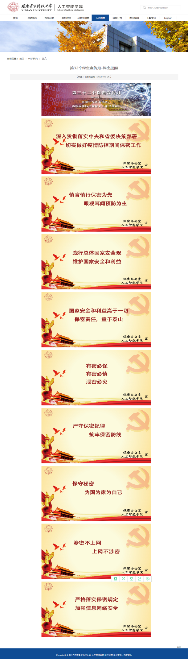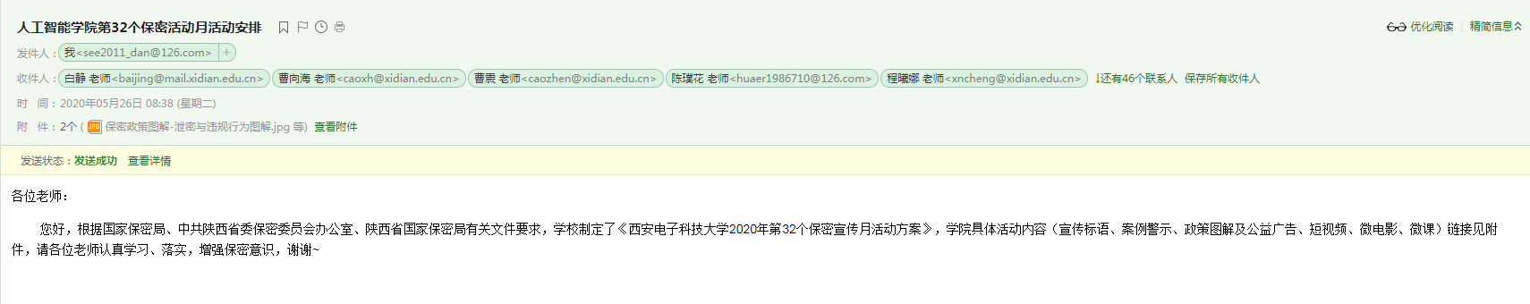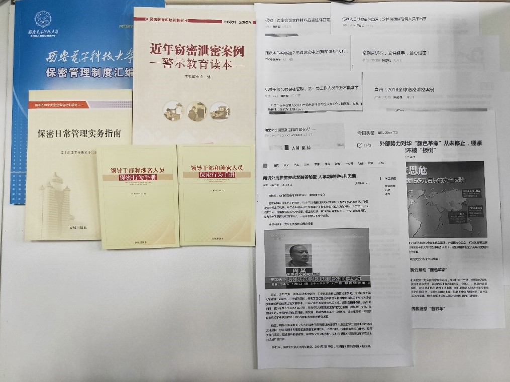 此外,437437必赢国际网址还制作了宣传标语、案例警示和系列学习资料清单,以展板、邮件、微信、学院网站和走廊电子屏幕等多种形式发布保密宣传教育相关信息,全方位向全体教师和广大学生推送保密提醒。