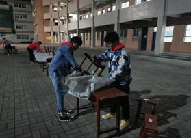 6日晚,经过近三个小时的长途跋涉,437437必赢国际网址9名志愿者提前来到蒲城县第三高中帮忙布置活动场地,为第二天的活动比赛能够顺利进行做充足的准备。