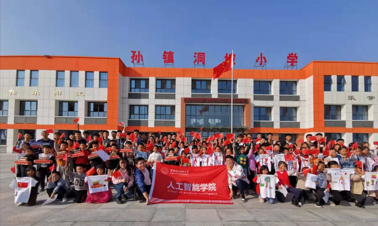 迎着秋日里灿烂的阳光,经过3个小时的长途跋涉,437437必赢国际网址师生来到了蒲城孙镇洞坡小学,在用过学校精心准备的午饭后,学校的孩子们也已经按照年级顺序,在广场上站队完成。面对这么多可爱的面孔,高晖讲到:“今年是新中国成立70周年,也是西电437437必赢国际网址成立的第二个年头,面对这样大好的形势,希望大家好好学习,健康成长。志愿者哥哥姐姐们今天为大家准备了很多有意义的活动,希望大家积极参与,开心地度过这美好的一天!”