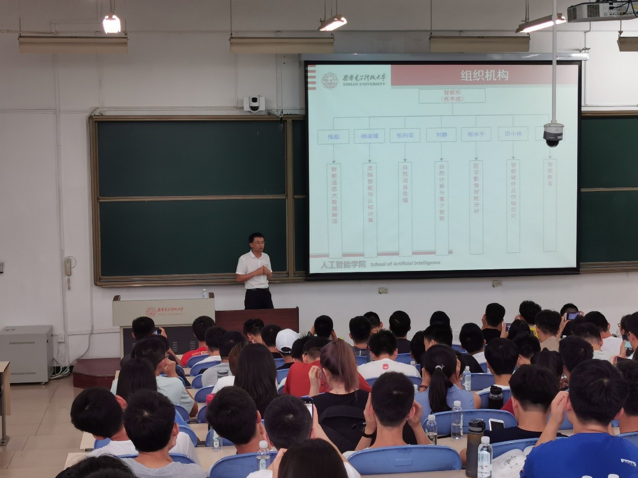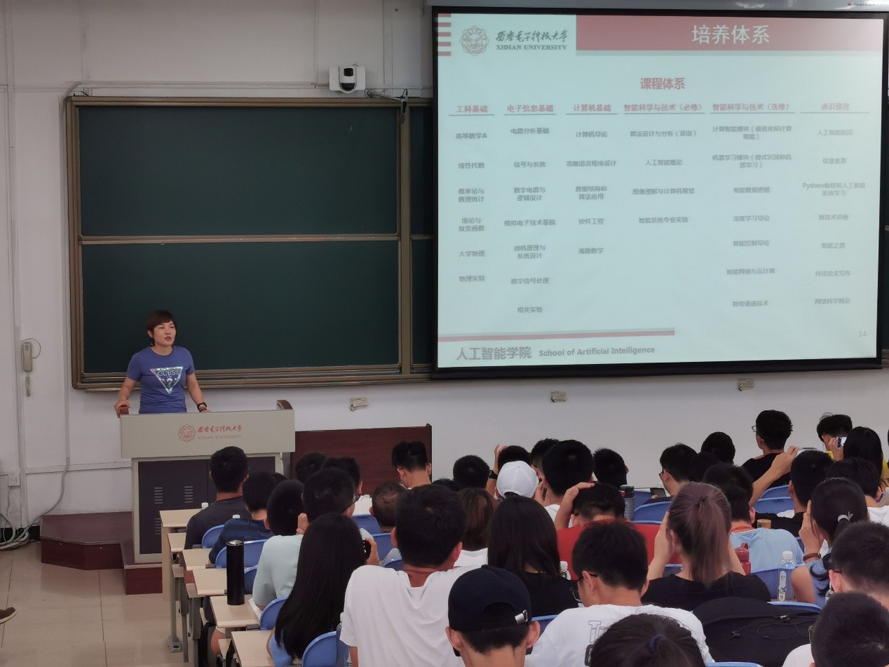 详细介绍了专业的培养方案和课程设置等大家迫切关注的问题。她从专业发展的背景出发,首先介绍了国内外智能专业的发展历程,然后阐述了我院在教学和科研实践中创新地确立“国际化+西电特色”的本硕博一体化培养体系。通过介绍,学生们进一步明晰了专业方向,明确了奋斗目标。