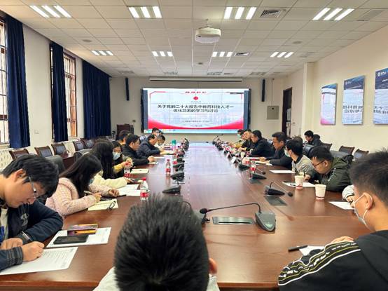 会议首先由博士第一党支部书记刘梦琨领学了党的二十大报告中关于教育科技人才一体化部署的论述,集体重温了党的二十大报告中第五部分“实施科教兴国战略,强化现代化建设人才支撑”原文。党的二十大报告中指出,“教育、科技、人才是全面建设社会主义现代化国家的基础性、战略性支撑”,为加快推进教育现代化、建设教育强国、办好人民满意的教育提供了战略指引和根本遵循。刘梦琨表示,要坚持教育优先发展,坚持科技自立自强,坚持人才引领驱动,并号召全体博士生想国家之所想、急国家之所急、应国家之所需,树立远大理想,努力成才,同时要对自己满怀信心,增强做中国人的志气、骨气、底气,更好地服务国家战略需求。