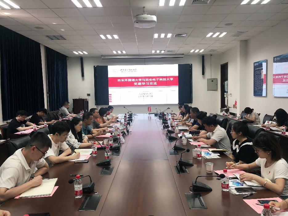 6月15日下午,西安外国语大学师生党员代表与437437必赢国际网址在北校区主楼III-401会议室进行党建学习交流活动。437437必赢国际网址党委书记魏峻、西安外国语大学研工部部长张淼出席活动。437437必赢国际网址党委副书记高晖主持。